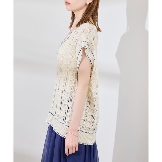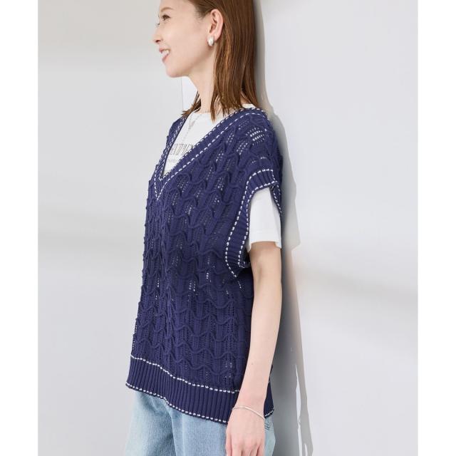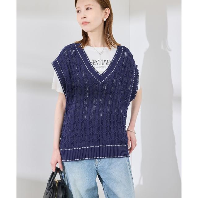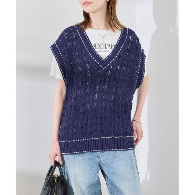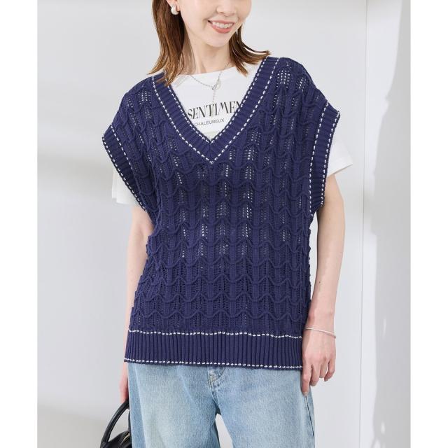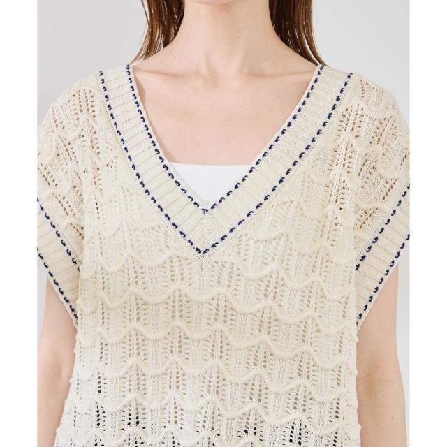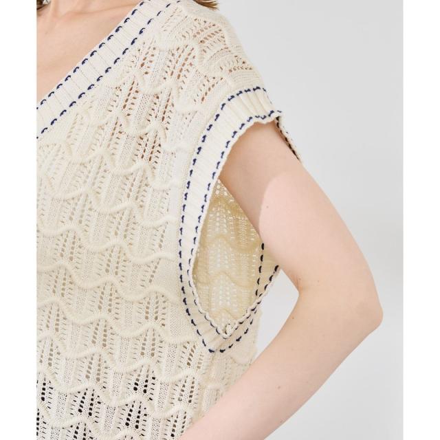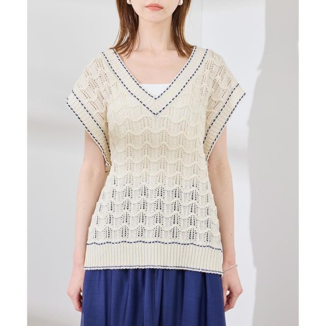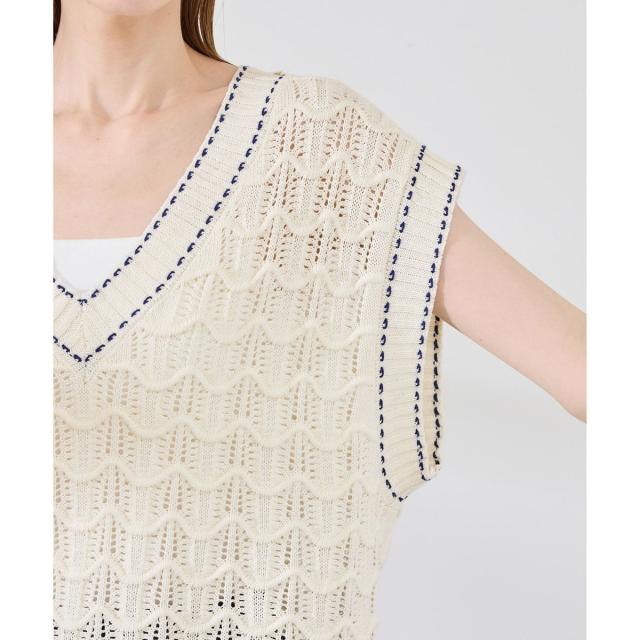 ロペピクニック(ROPE’ PICNIC)/配色ステッチ透かし編みニットベスト