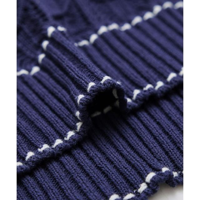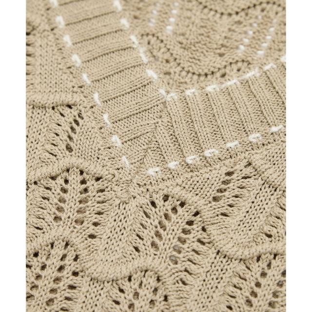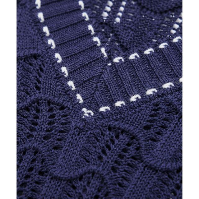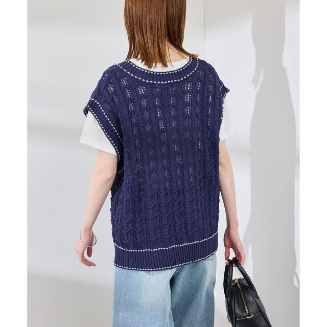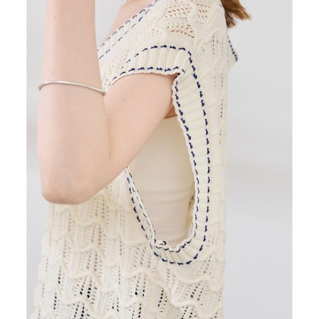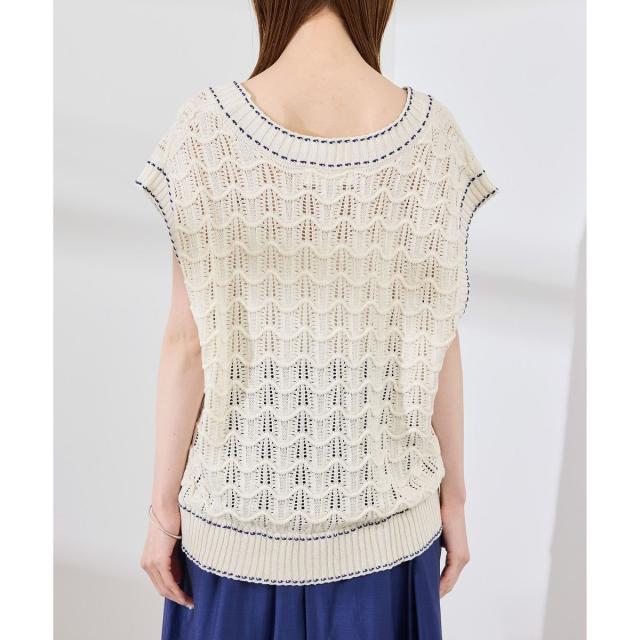 配色ステッチ透かし編みニットベスト