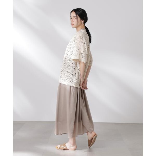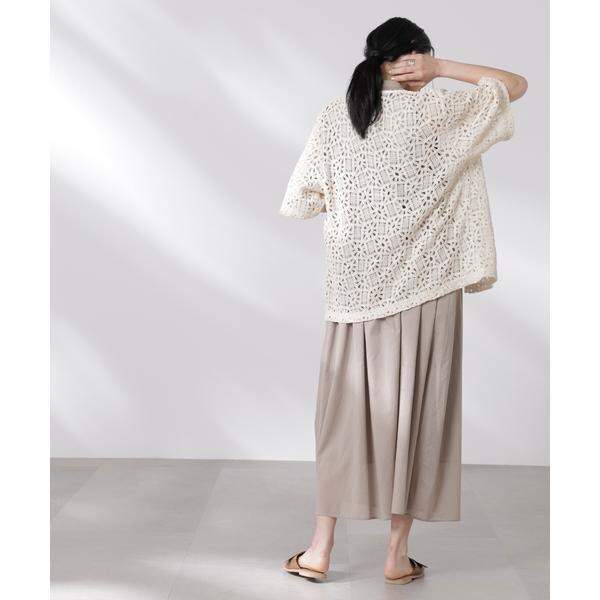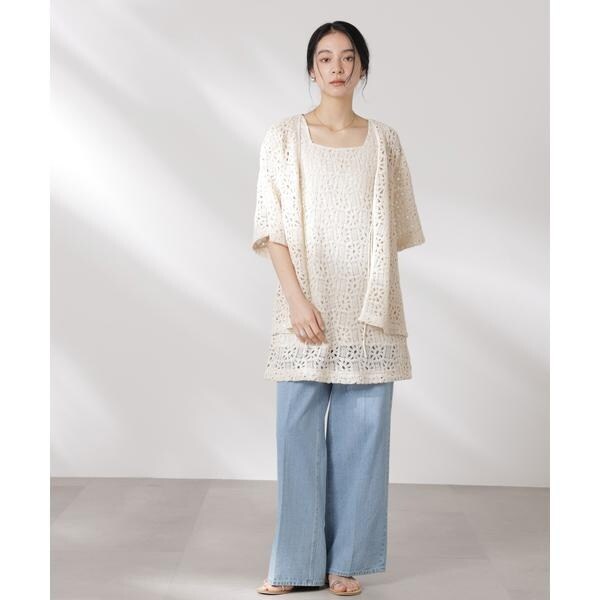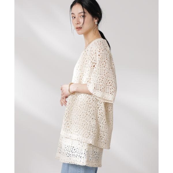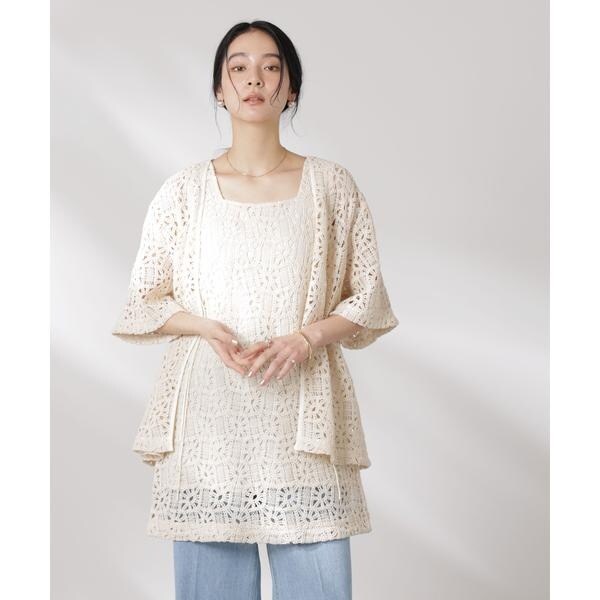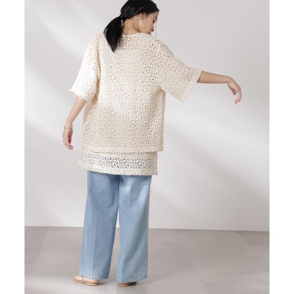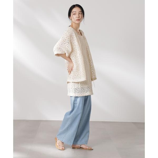 さらっと羽織ってコーディネートのポイントになる半袖レースジャケット。ヴィンテージライクな雰囲気のある生地とすっきりとしたネックラインでカジュアルな印象に。リボンを結んで着るのも◎、ラフに羽織って紐を垂らした着こなしも素敵な一枚です。