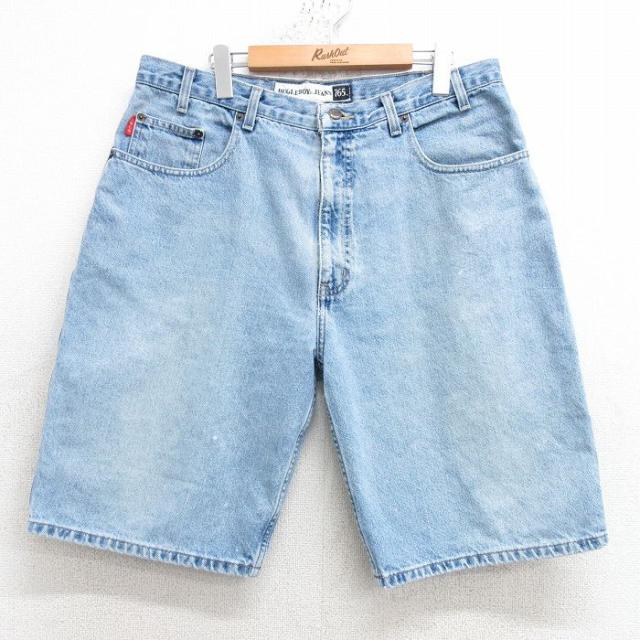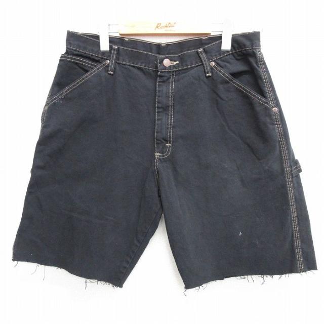 【実寸サイズ】 ウエスト(腰まわり)88cm レングス29cm 股上(ウエストから股の付け根)27cm ワタリ幅(股の付け根部分の幅)30cm 裾幅25cm (ウエスト34inch)