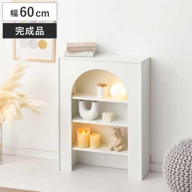 マントルピース 幅60cm 完成品 可動棚 ( オープンラック 棚 ラック 収納 ディスプレイラック シェルフ 飾り棚 韓国風 ホワイト アーチ型 )
