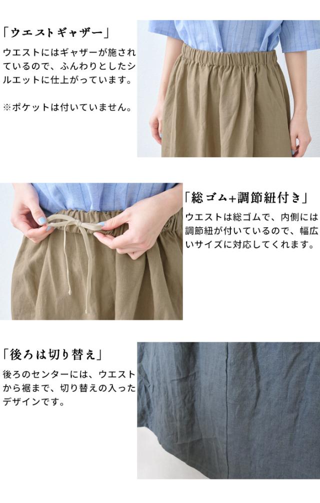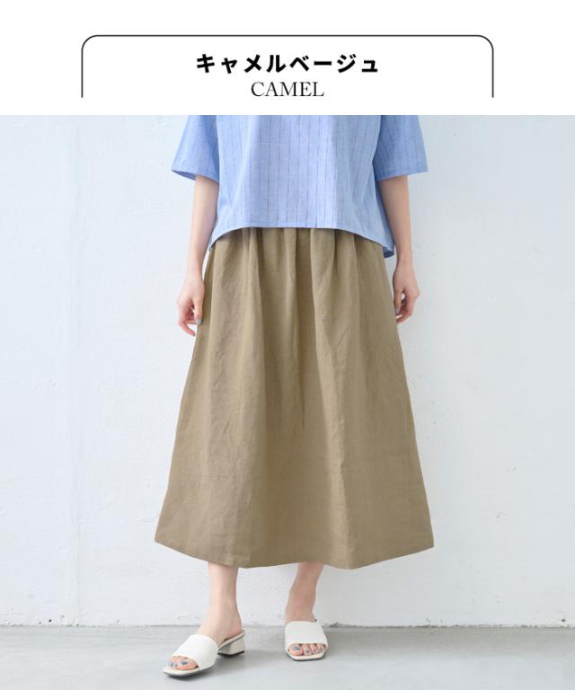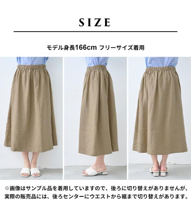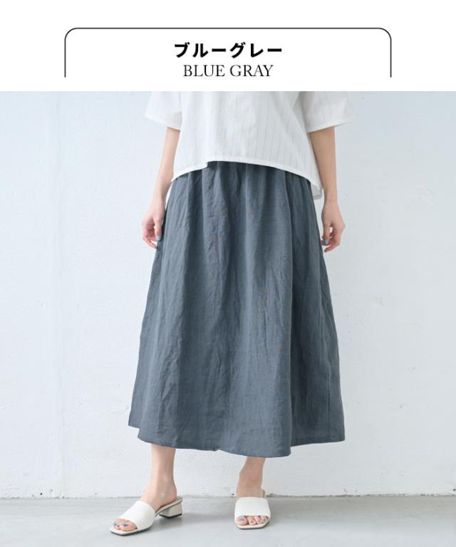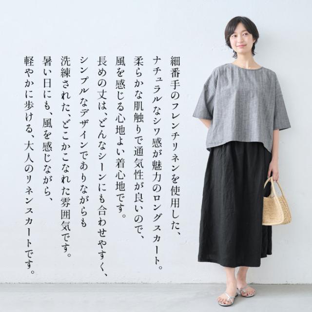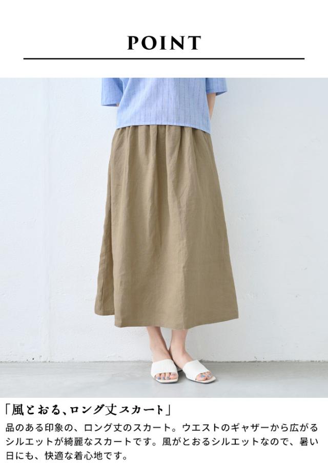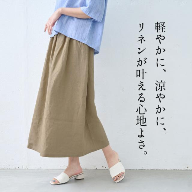 40番手フレンチリネン100% スカート / 日本製 きれいめ 40代 50代 60代 レディース フレアスカート ロング リネン 夏 リネン100% 麻100% 麻 涼しい 大人服 ボトム ウエストゴム ナチュラル シンプル ゆったり 長め ひざ下 ロング丈 春夏