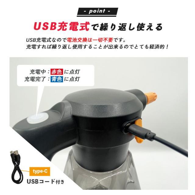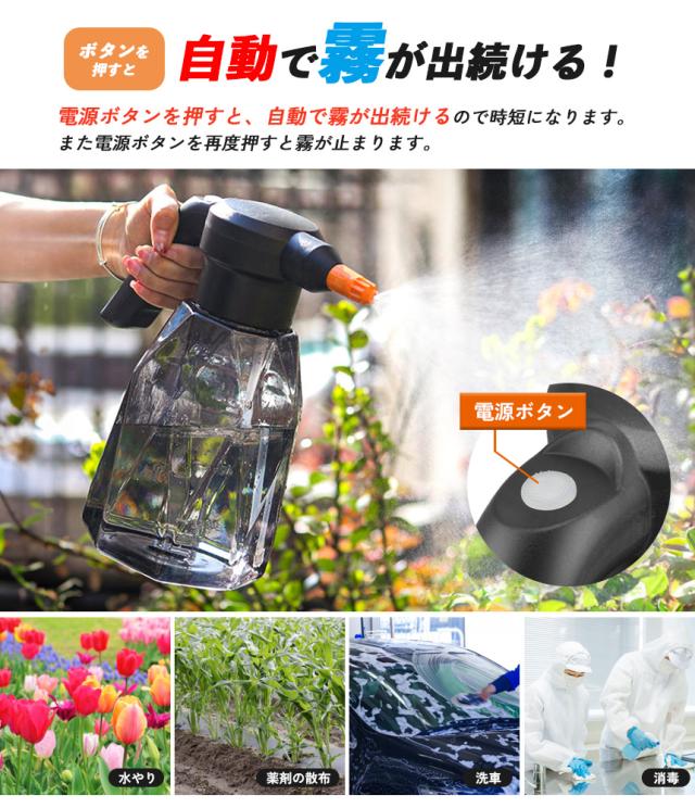 噴霧器 充電式 電動噴霧器 充電式噴霧器 電動 除草剤 散布 薬剤 消毒 雑草駆除 害虫駆除 水やり 液肥 コードレス 家庭菜園 ガーデニング 園芸用品 電動式噴霧器 2L 小型噴霧器 電気噴霧器 霧吹き じょうろ USB充電式 電動スプレー