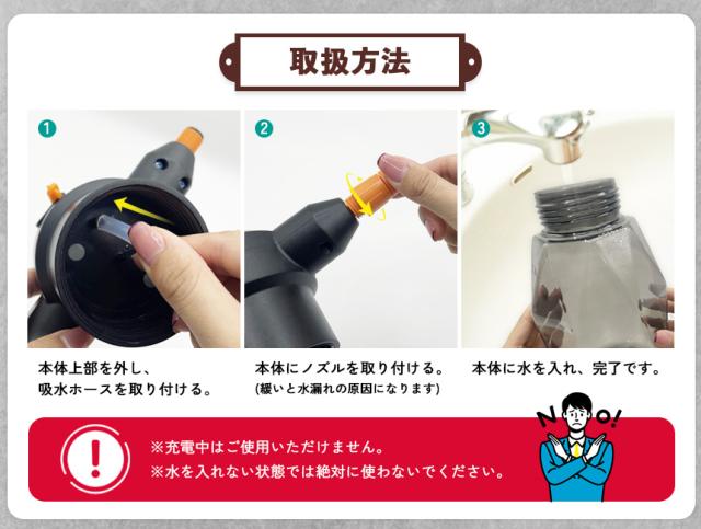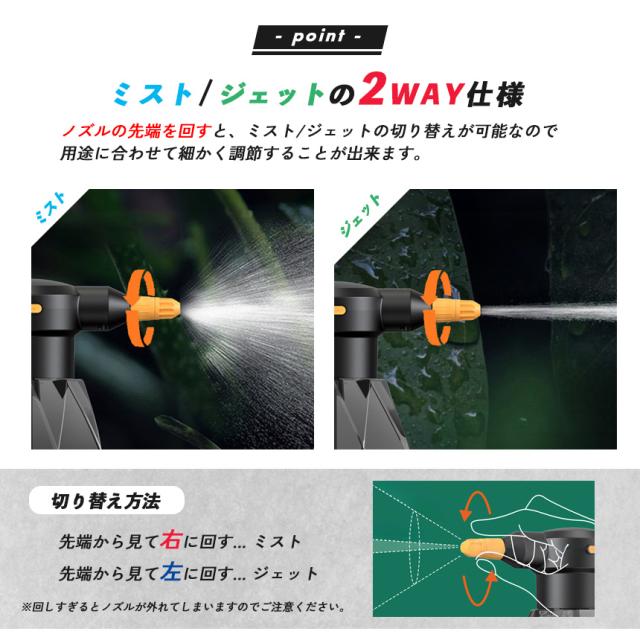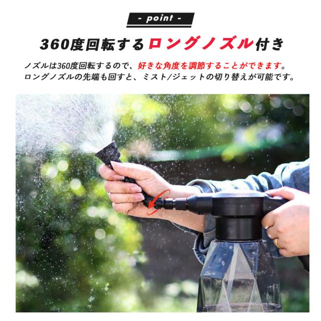 自動噴霧なので水やりや掃除、洗車、消毒など様々な場面で役立つこと間違いなし!