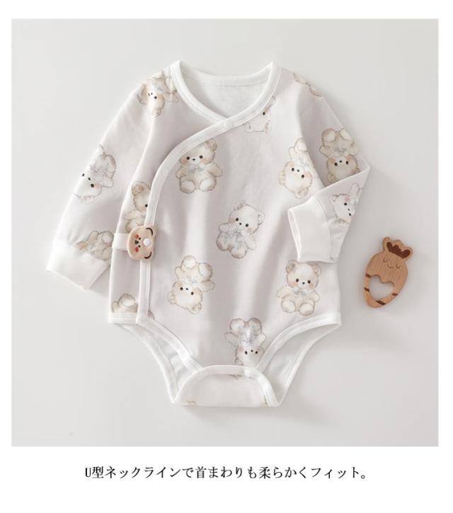 【綿・無縫製】 ベビー 長袖ロンパース 春秋用 コットン 綿 ボディスーツ カバーオール 柔らか 可愛い シンプル 男の子 女の子 全開スナップ ロンパース 肌着 部屋着 出産祝い ギフト 新生児