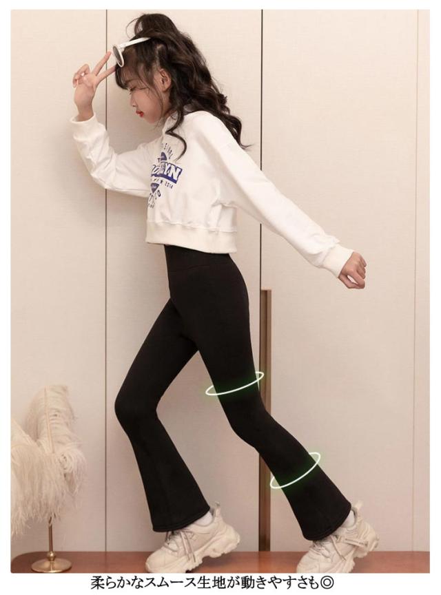 フレアレギンス フレアパンツ レギンス ボトム パンツ 裾フレア 無地 110 120 130 140 150 160 170 シンプル スパッツ 脚長効果 やわらか キッズ ジュニア ガールズ 女の子 ダンス ヒップホップ HIPHOP レッスン着 普段着 チーム K-pop 送料無料