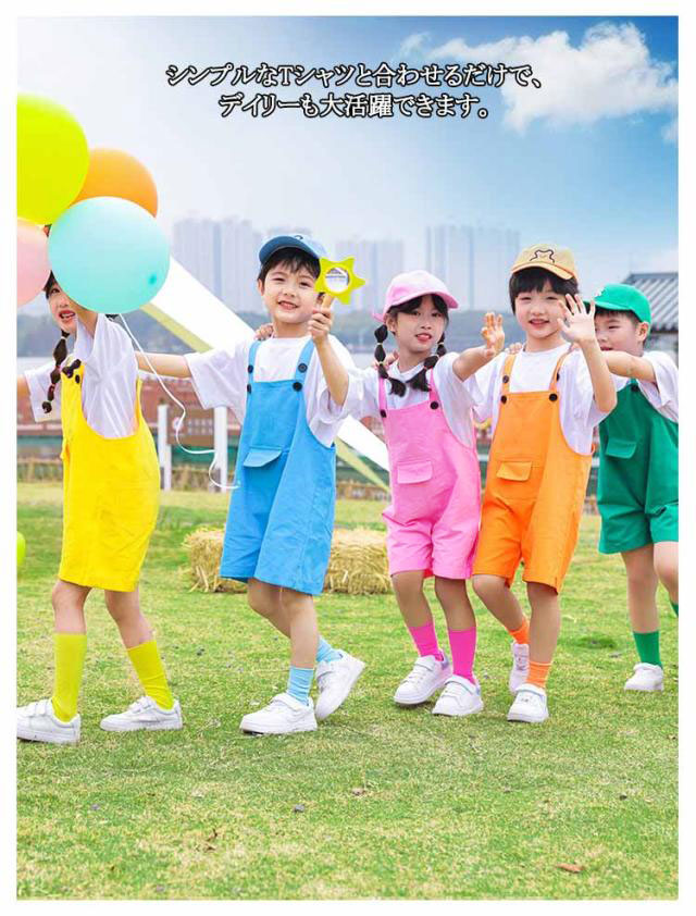 キッズ服 子供用 ダンス衣装 おしゃれ サロペット オーバーオール カラフル カラーパンツ 薄手 夏用 ダンス ヒップホップ 男の子 女の子 ジュニア ジャズ 幼稚園 発表会 演出服 入学式 卒業式 送料無料