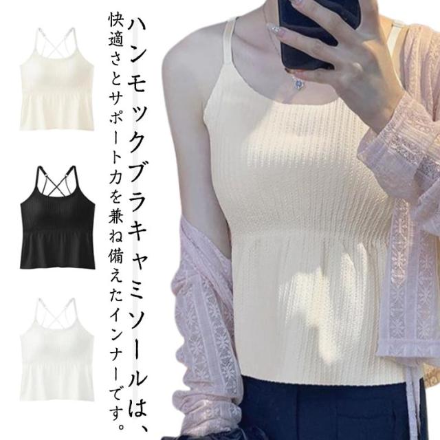 リブブラキャミソール カップ付き ノンワイヤー ブラトップ 柔らかい バストアップ 楽に補正 大きいサイズ ブラキャミ キャミソール 締め付けない キャミブラ トップス インナー バストケア