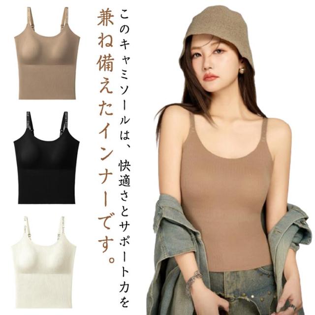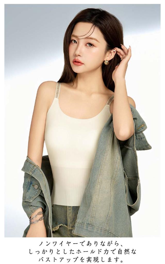 リブブラキャミソール カップ付き ノンワイヤー ブラトップ 英字肩紐 バストアップ 楽に補正 大きいサイズ ブラキャミ キャミソール 締め付けない キャミブラ トップス インナー バストケア