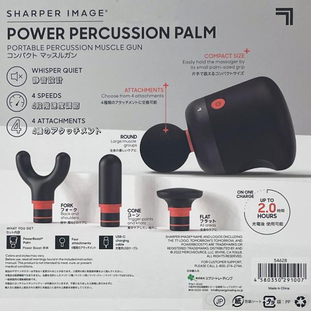 SHARPER IMAGE シャーパーイメージ パワーブーストマッスルガン パルム 筋膜リリースガン アタッチメント4種付属 小型 軽量 500g 4段階調節 マッサージガン ボディケア 男女兼用 【新品】POWERBOOST MUSCLE GUN PALM 肩こり 首こり %off cst