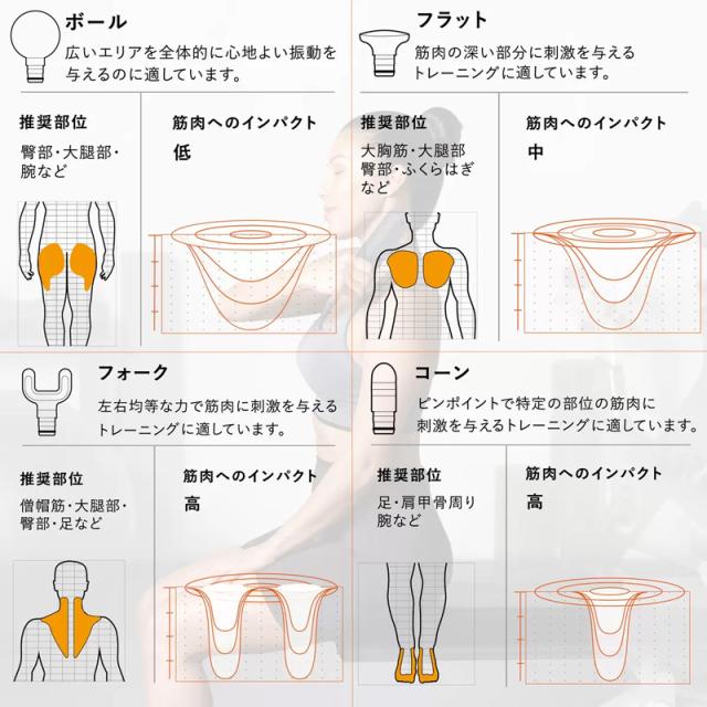 ・ボール … 広いエリアを全体的に心地よい振動を与えるのに適しています