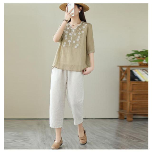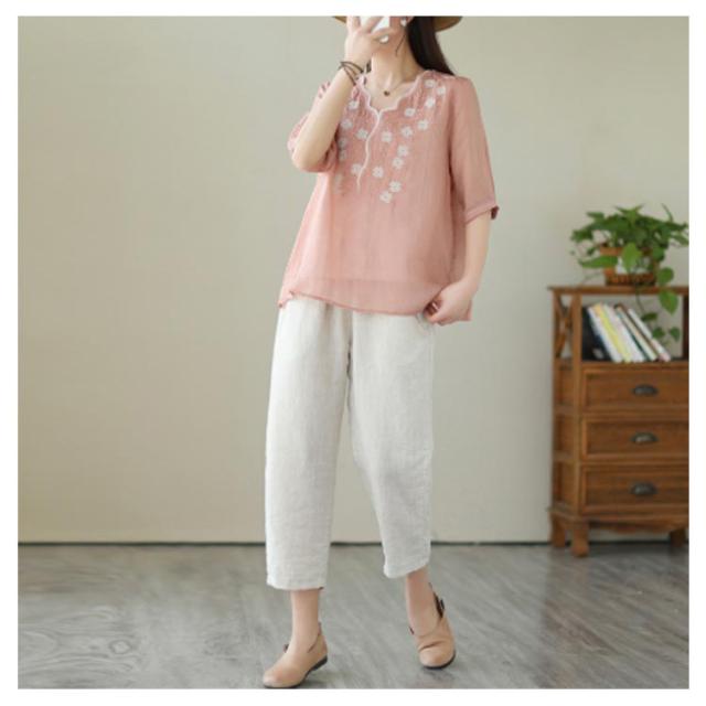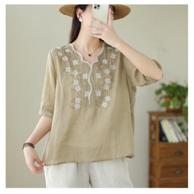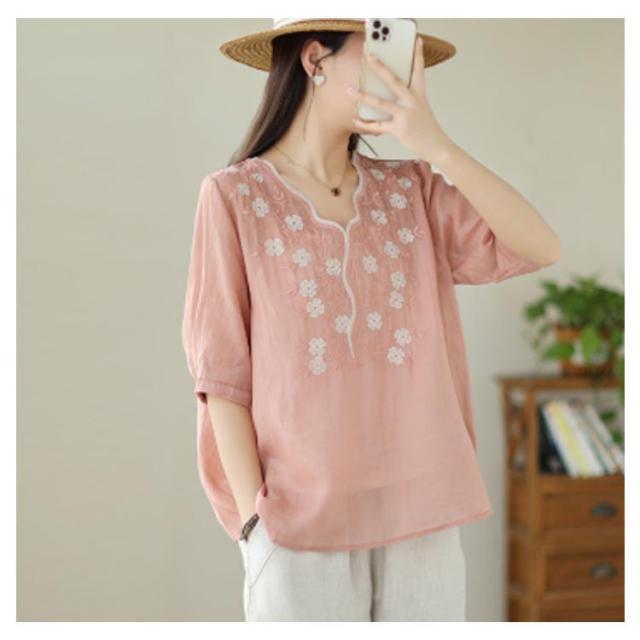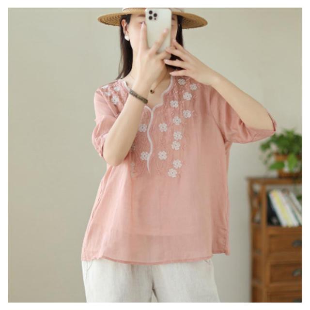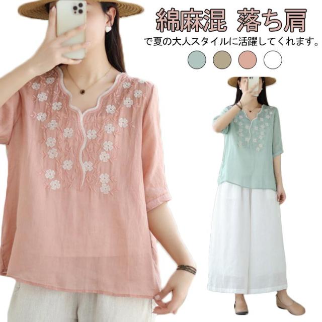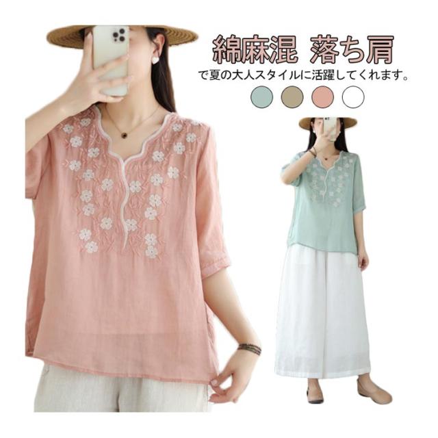 リネンブラウス 大人 レディース ゆったり シャツブラウス 綿麻混 半袖 チュニック 無地 ゆったり 通勤 おしゃれ リネンブラウス ドロップ ショルダー 落ち肩 体型カバー レディースシャツ 大人 シンプル トップス 母の日 30代 50代 大きいサイズ