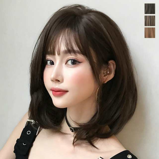 ウィッグ ミディアム ショート ボブ 自然 フルウィッグ バレない 黒髪 ショートボブ レイヤー 小顔効果 医療用 かつら 大人 耳かけ 前髪 レディース 女性 コスプレ ブラック おしゃれ かわいい