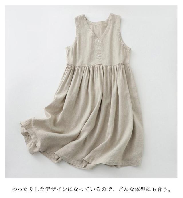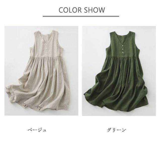 部屋着 きれいめ レディース vネック Aライン 綿麻ワンピース 夏物 夏用 無地 ワンピース ベージュ 体型カバー ゆったり 袖なし ワンピース 大きいサイズ カジュアル ゆったり 着?せ 女性 夏 旅行 オシャレ