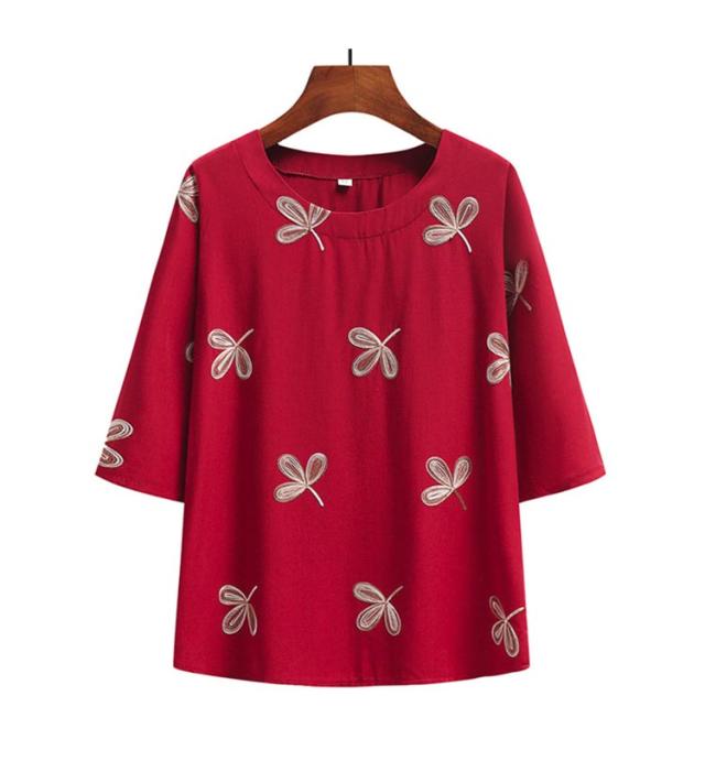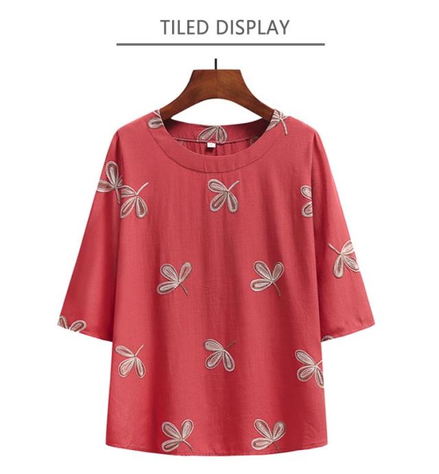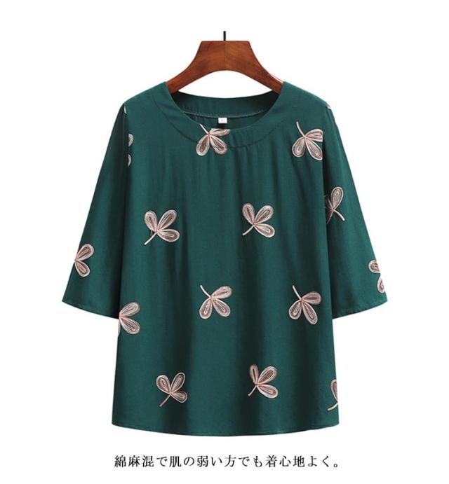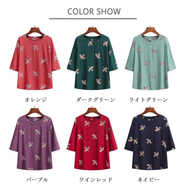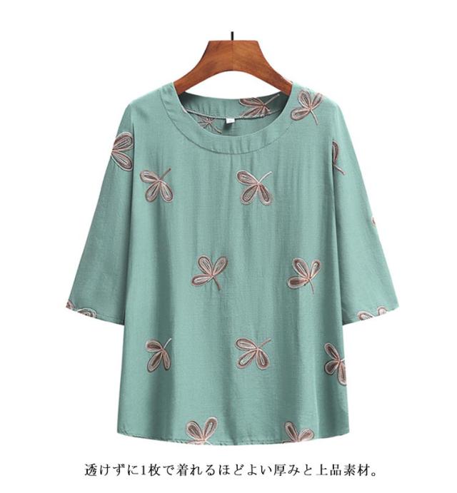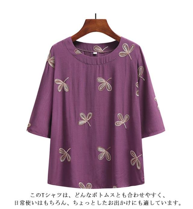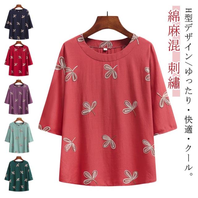 綿麻混 半袖 レディース 刺? 婦人服 春夏 シニア ゆったり Tシャツ シニアファッション トップス 60代 70代 80代 おばあちゃん 90代 高齢者 服装 おしゃれ 半袖 おすすめ ギフト プレゼント 部屋着