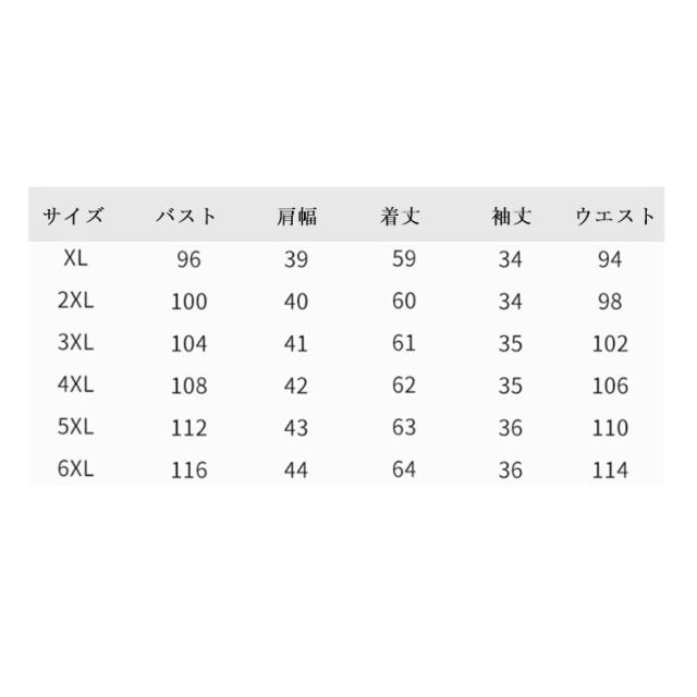 | サイズ | XL 2XL 3XL 4XL 5XL 6XL |