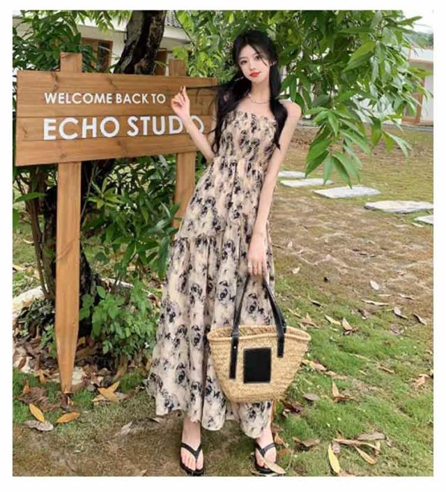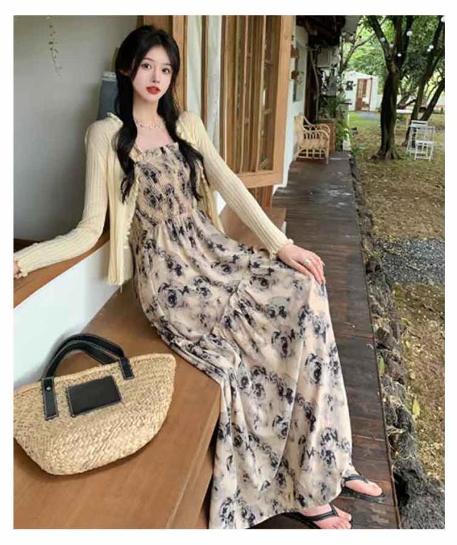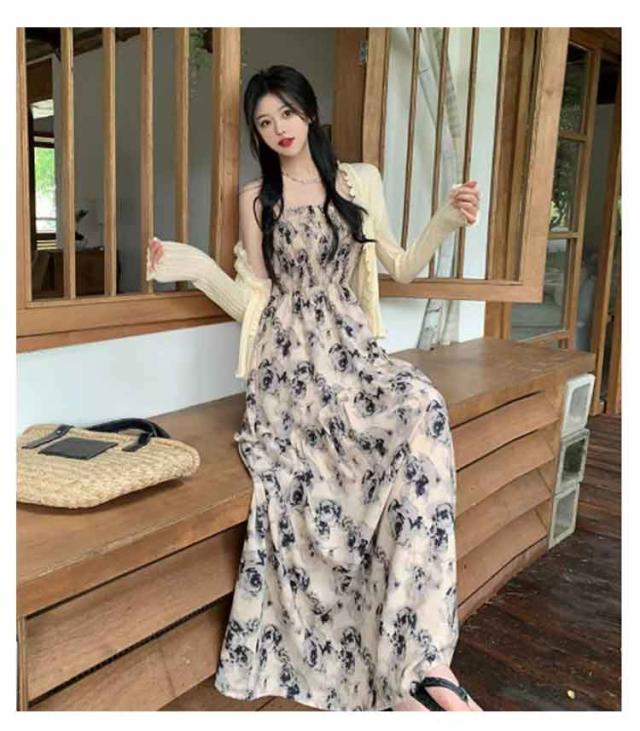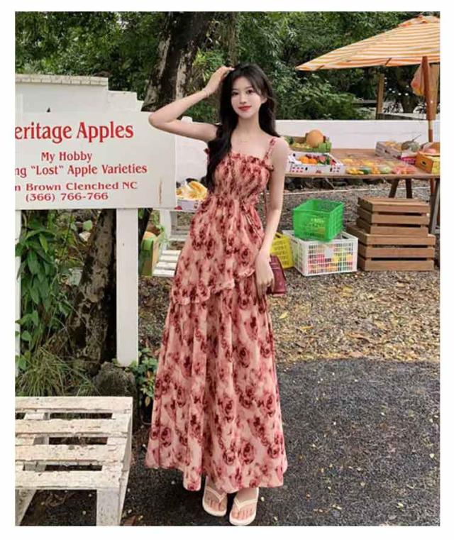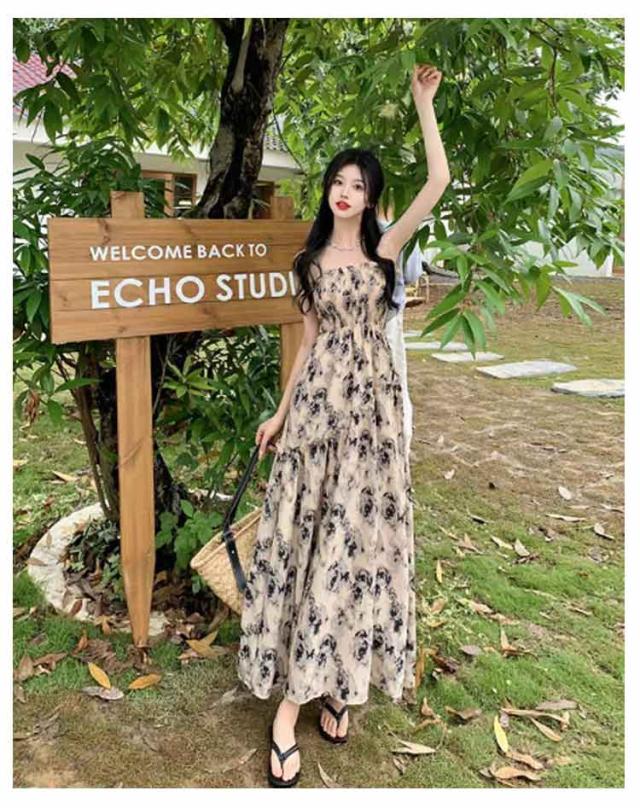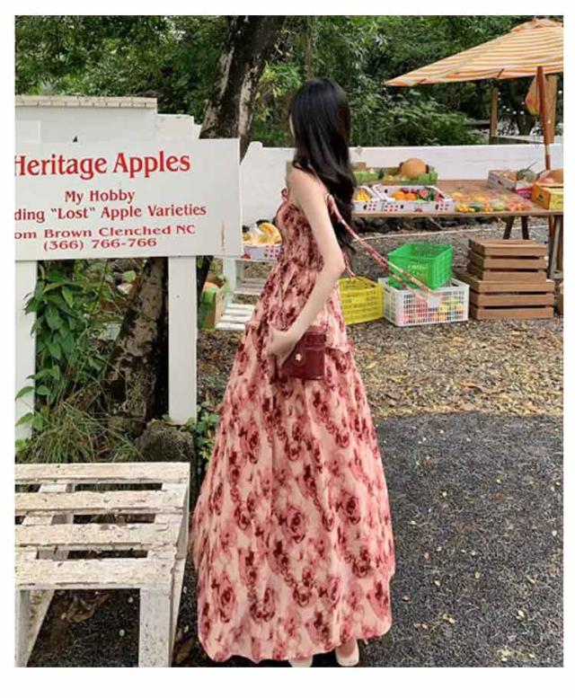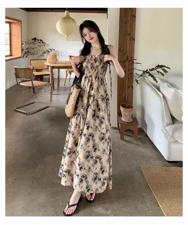 ロングワンピース キャミソールワンピース 夏 リゾートワンピース レディース マキシ丈ワンピース ワンピース ノースリーブ エレガント Aライン フェミニン ハイウエスト 可愛い お洒落 花柄 シャーリング ふんわり 30代 薄手 20代 ワンピース 40代
