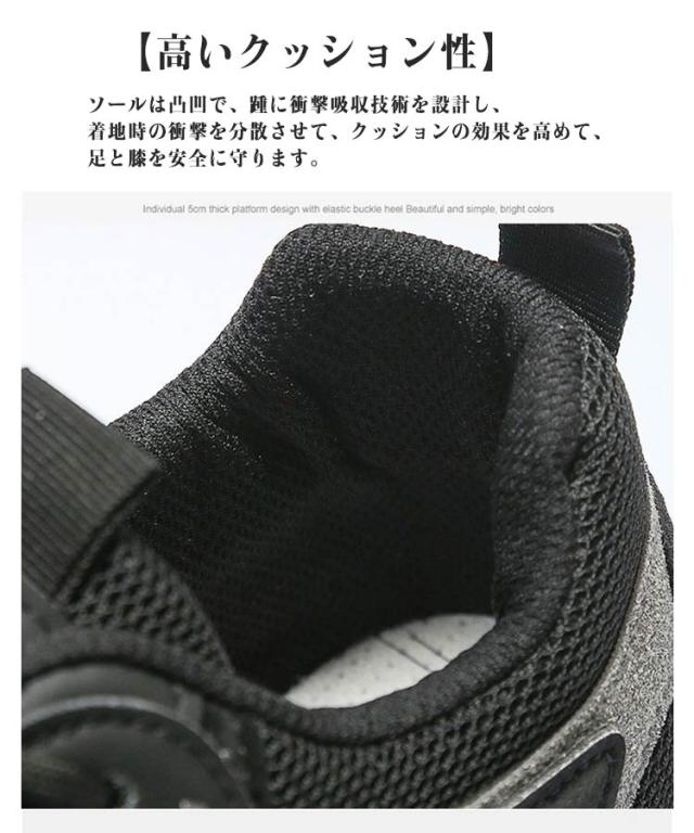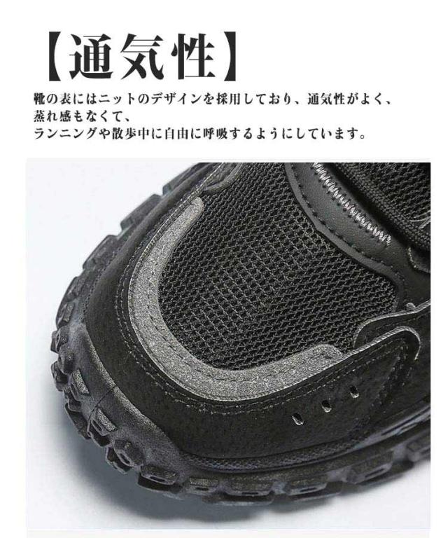 | 【通気性】靴の表にはニットのデザインを採用しており、通気性がよく、蒸れ感もなくて、ランニングや散歩中に自由に呼吸するようにしています。 【滑り止め】底面には滑り止め効果のあるソールを採用して、濡れた地面等での歩行をサポートします、変形しにくて、軽くて爽やかな履き心地。 【高いクッション性】ソールは凸凹で、踵に衝撃吸収技術を設計し、着地時の衝撃を分散させて、クッションの効果を高めて、足と膝を安全に守ります。 【多用途】運動、ランニング、ジョギング、歩行、クラブ活動、ジムでトレーニング、日常、通学、通勤などに利用できます。ジムなどの室内ではもちろん、アウトドアやレジャーにも履き出来ます。 | |