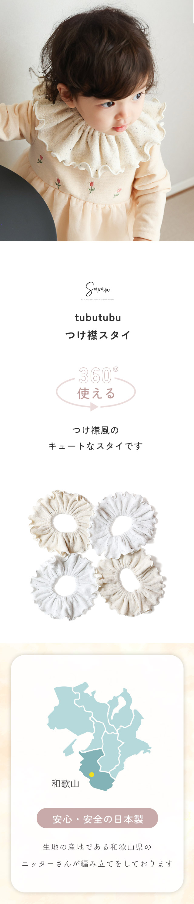 日本製 選べる2枚組 tubutubu つけ襟 スタイ 360℃ くすみカラー パイルコットン よだれかけ スタイ おしゃれ かわいい 韓国風 男の子 女の子 タオル地 お宮参り ベビー 出産準備 出産祝い 赤ちゃん ビブ ギフト セット 食事 保育園着 ベビー服