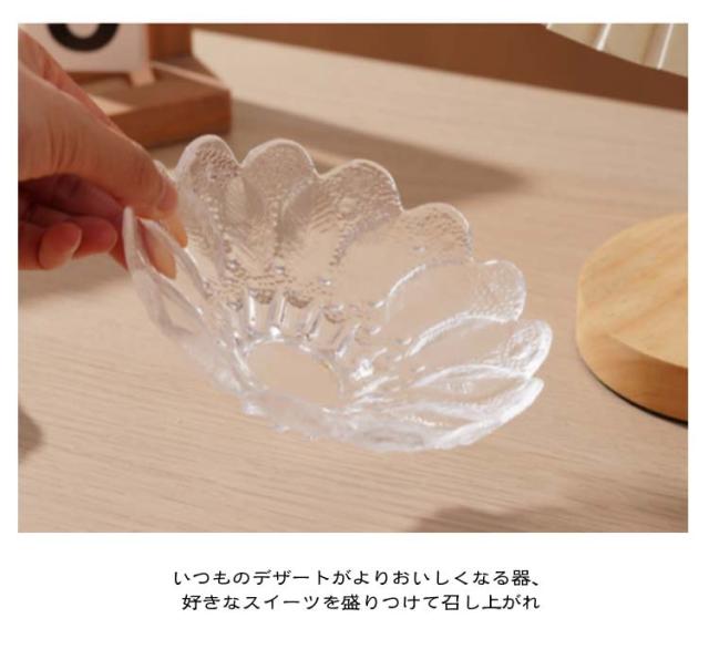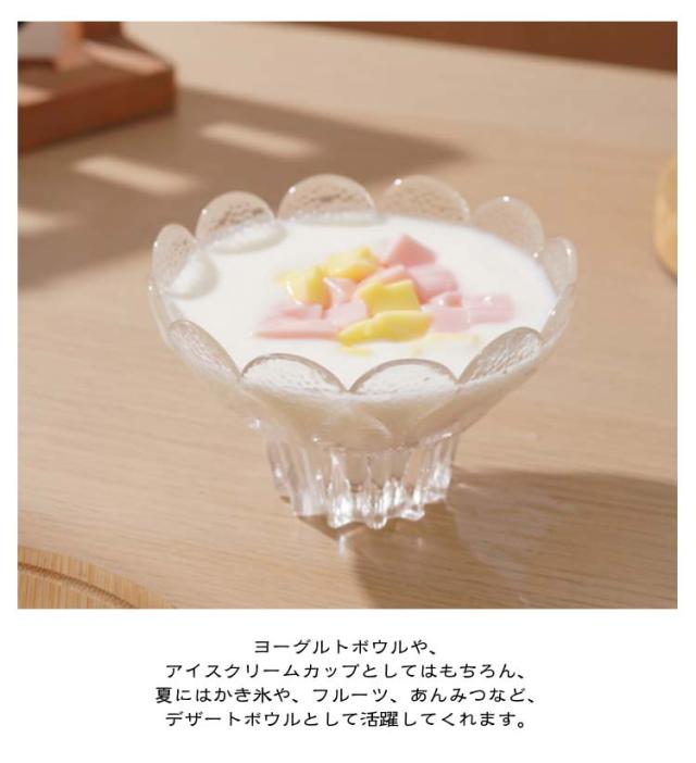 ガラス デザートカップ カップ ボウル アイスクリーム ヨーグルトボウル 小鉢 皿 デザートボウル フラワーモチーフ 脚付き ガラス製 可愛い デザートカップ 食器 フルーツ ボウル
