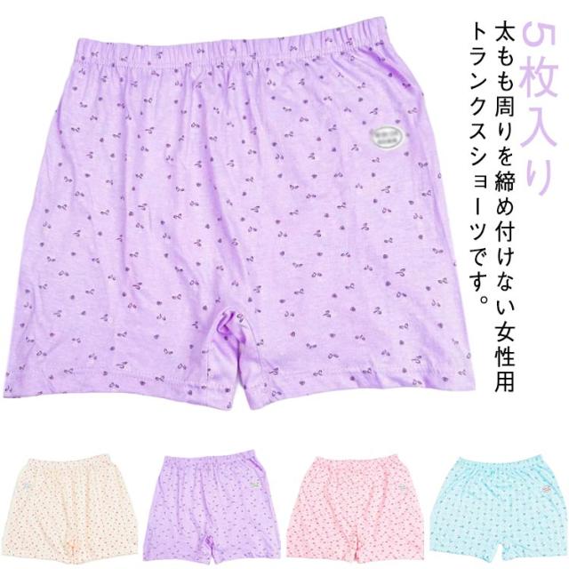 | 【5枚入り】 太もも周りを締め付けない女性用トランクスショーツです。 可愛くはけるトランクスタイプのショーツ。 お腹まですっぽりの深ばき丈。 優しい肌触りの綿生地で吸汗性、通気性があります。 ウエストはゴムでお腹を締めつけにくく、裾広がりで履きやすく、脱ぎやすいです。 | |