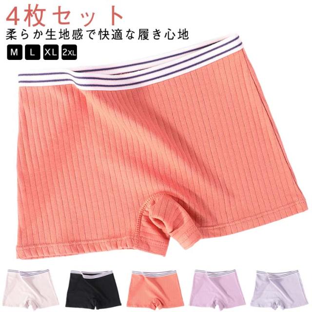 綿 シンプル ボクサー 中学生 キッズ 子供 ショーツ インナー 女の子 レディース 4枚組 パンツ M〜2XL トランクス 4枚組 大人 小学生 高学年 女子 ジュニア コットン かわいい カジュアル ガールズ 高校生