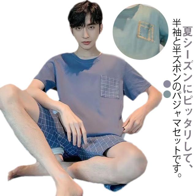 ハーフパンツ パジャマ ナイトウェア 夏 ルームウェア 上下セット Tシャツ メンズ ショートパンツ 半袖 ゆったり ひんやり 快適 薄手 吸汗通気 肌に優しい パジャマ 寝巻き 大きいサイズ