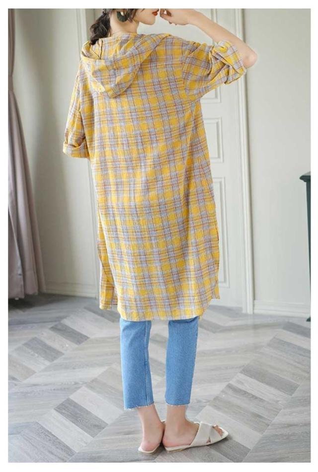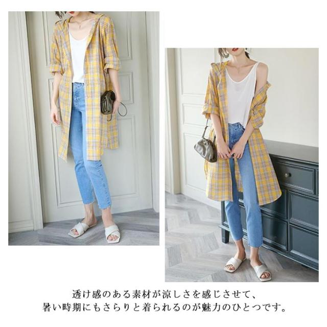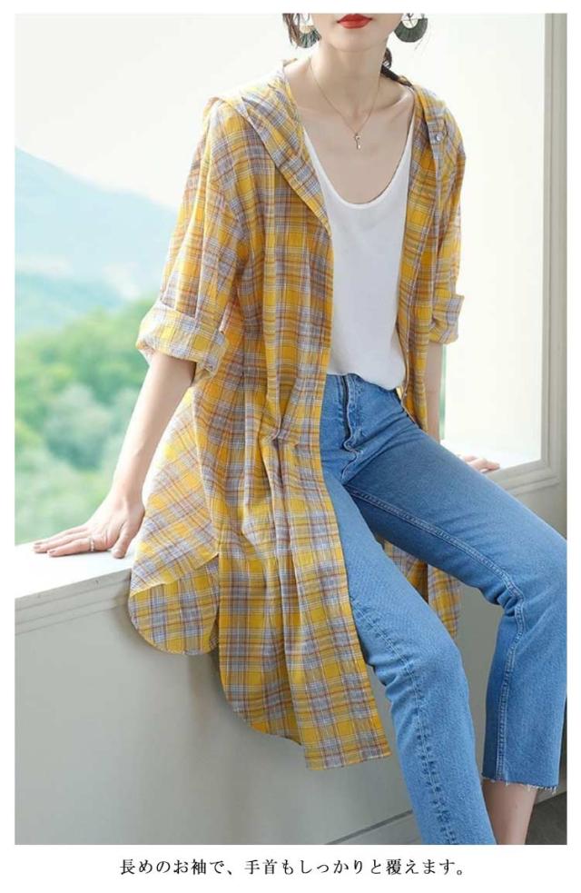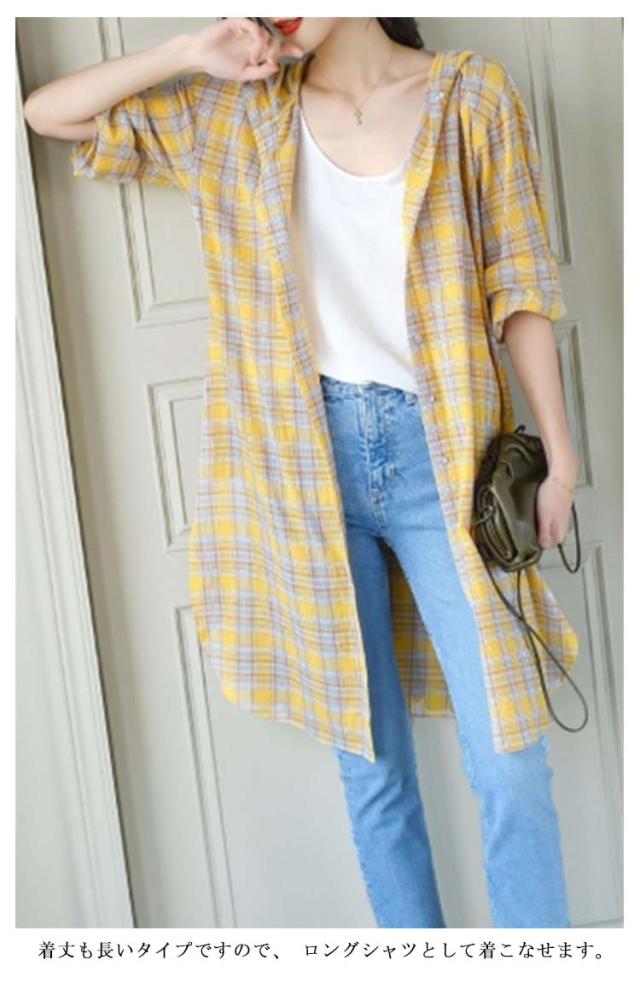 ロングシャツ チェックシャツ 上着 チェック柄 大きいサイズ 秋 ネルシャツ ロングシャツ 長袖 レディース シャツ トップス ロングシャツ 羽織り アウター ゆったり 体型カバー オーバーサイズ カジュアル おしゃれ イエロー ネイビー