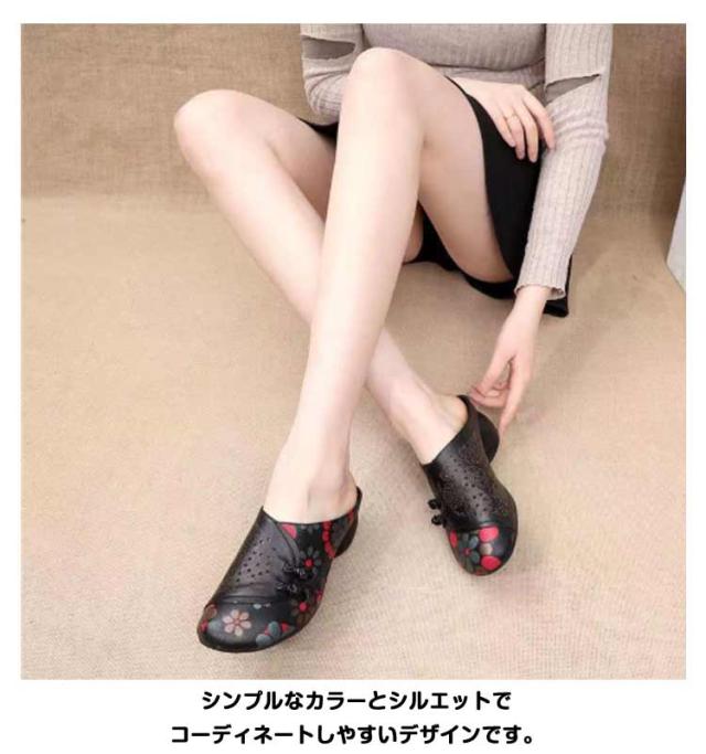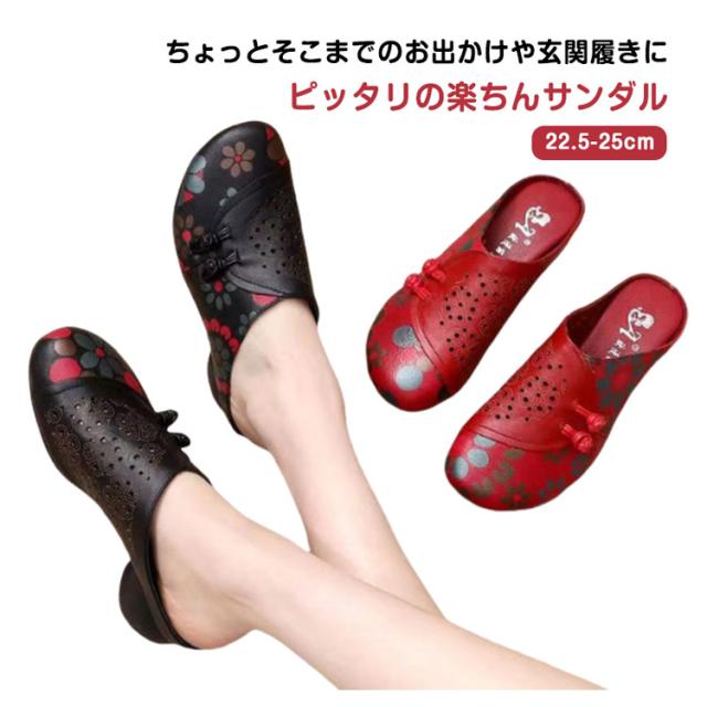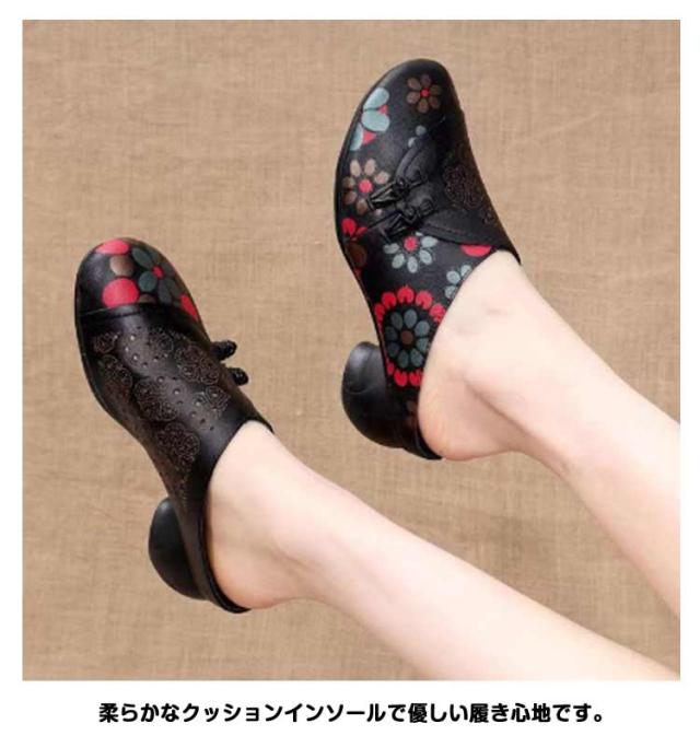 ぺたんこ 夏靴 ミュール レトロ 花柄 レディース 花柄 ラウンドトゥ サボサンダル サンダル 外履き 軽量 疲れにくい 歩きやすい コンフォート スリッパ エスニック 痛くない 安定感 疲れない サボサンダル オフィス カジュアル