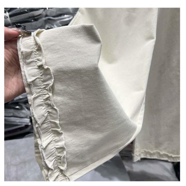 | ・裾フリルワイドパンツ ・裾部分がフリルになっていて、アクセントになってくれます。 ・ゆるっとしたワイドシルエットのトップスになどのスニーカーと合わせたスタイリングがおすすめです。 ・ウエストはゴム仕様なのでストレスフリーに着用できます。 | |