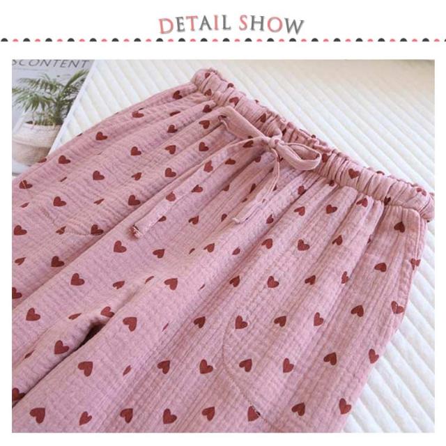 パジャマ ズボン パンツ 綿 L ルームウェア 下 レディース M ダブルガーゼ ダブルガーゼ ルームパンツ XL ハート柄 ゆったり コットン パジャマ ナイトウェア プレゼント オールシーズン ガーゼ ギフト プレゼント 湯上りパンツ 春夏秋冬 長パンツ 母の日