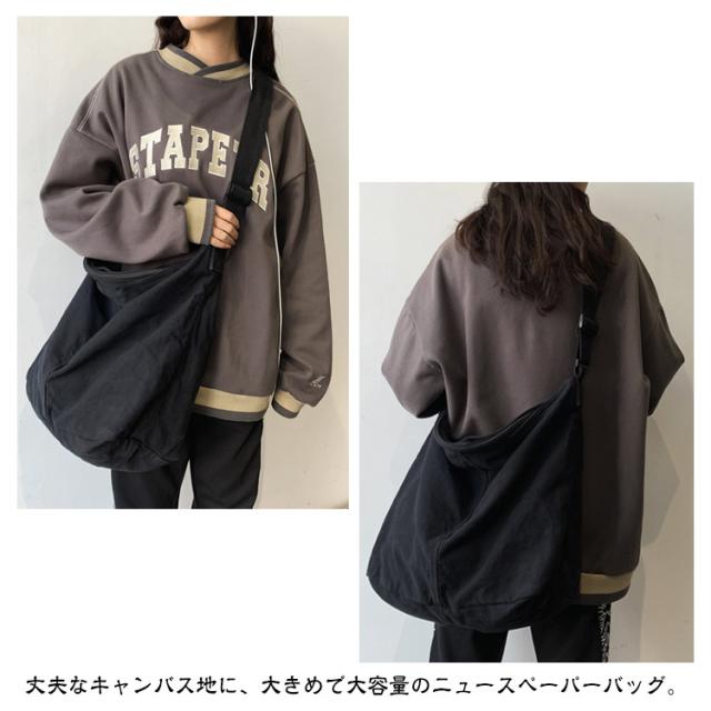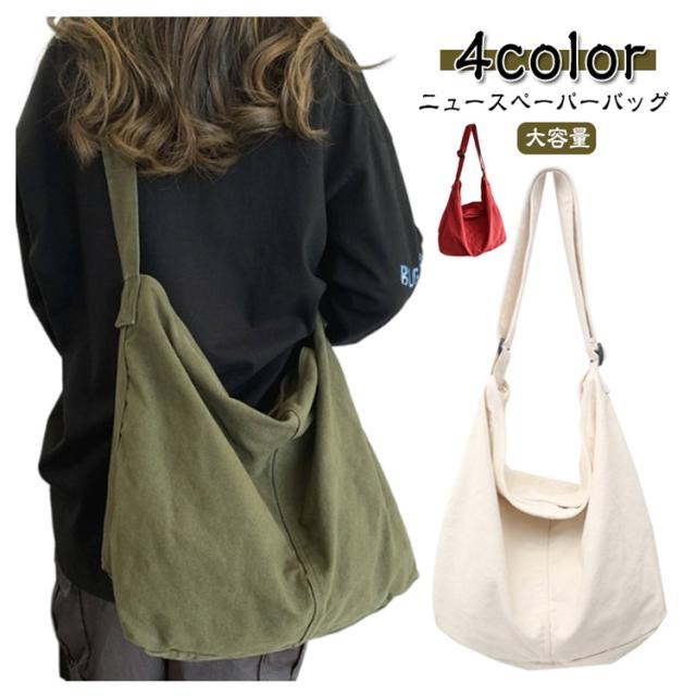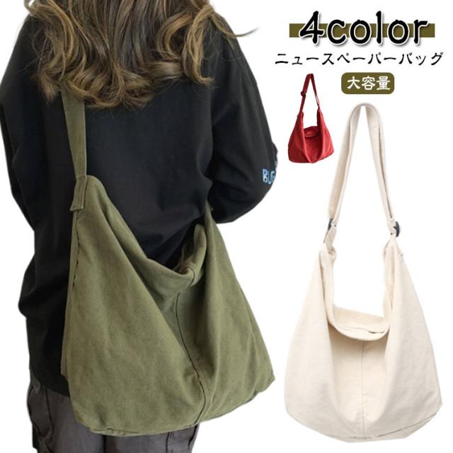 大容量 ショルダーバッグ ニュースペーパーバッグ A4 斜め掛け バッグ メンズ 旅行 レディース キャンバス トートバッグ bag ファスナー newspaper 大きめ 無地 通勤 通学 肩掛け 軽量 ショッピング ショルダーバッグ 黒 白 赤 緑 カジュアル