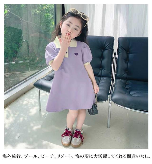 膝丈 ワンピース 女の子 ポロワンピース 半袖 こども服 ガールズ 半袖ワンピース 春夏 子ども服 可愛い ポロワンピ ワンピ キッズ 子供服 体型カバー 大きいサイズ 学生 夏服 旅行 リゾート ポロワンピース かわいい 誕生日 ギフト プレゼント