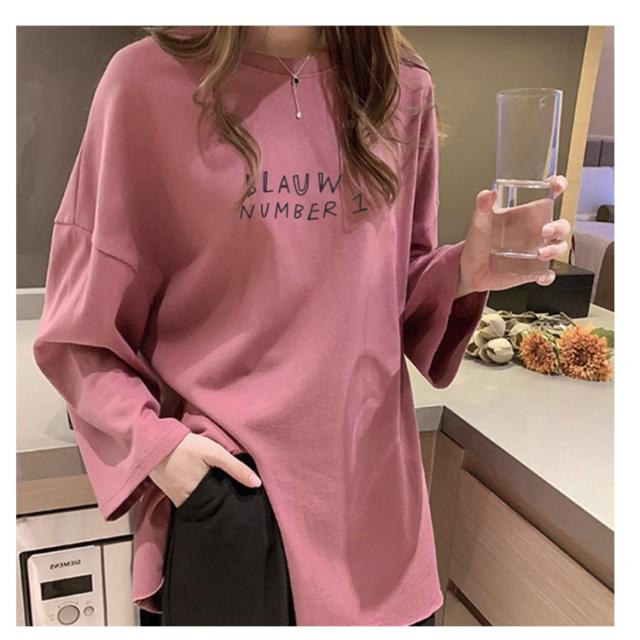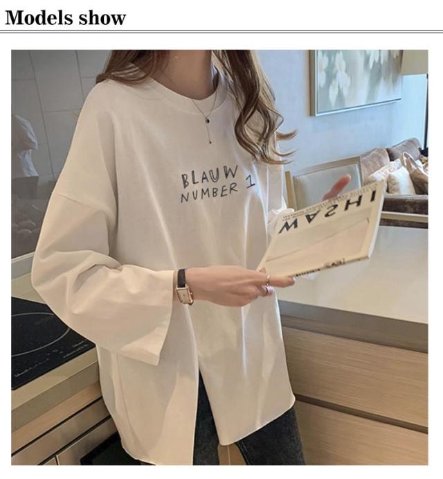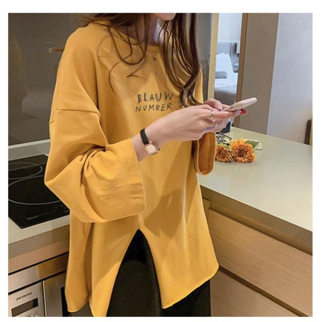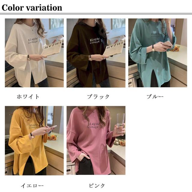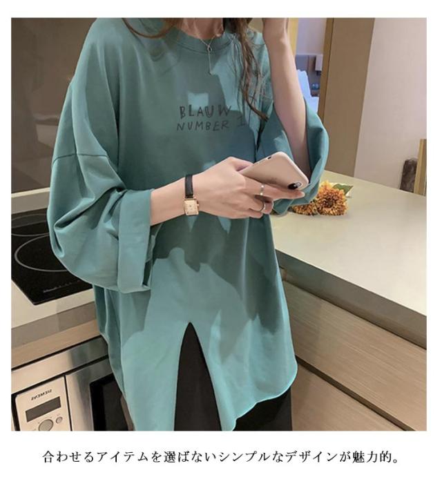 長袖 レディース 春 カットソー tシャツ クルーネック サイドスリット ロンt トップス おしゃれ tシャツ ゆったり プリント 大きいサイズ カジュアル 可愛い