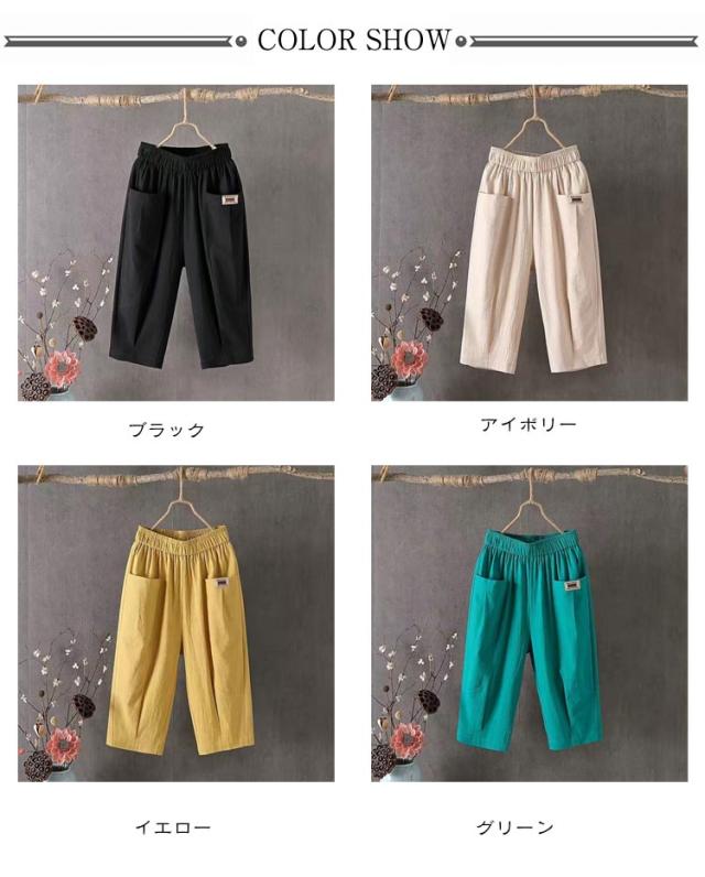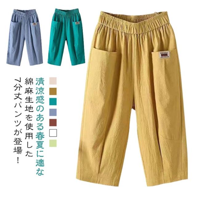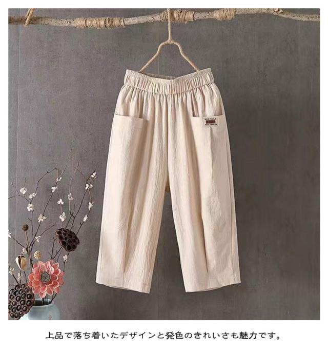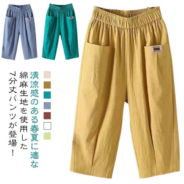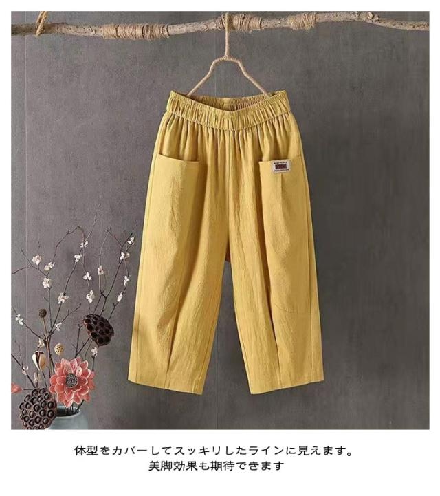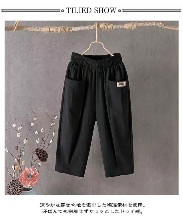 綿麻パンツ 涼しい レディース リネン おしゃれ 7分丈 夏 薄手 テーパードパンツ ウエストゴム 七分丈パンツ 綿麻 ボトムス 無地 パンツ 40代 体型カバー パンツ 美脚 着?せ 大きいサイズ リラックス ゆったり ナチュラル 20代 30代 パンツ 快適