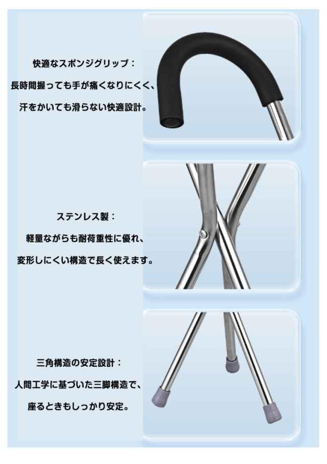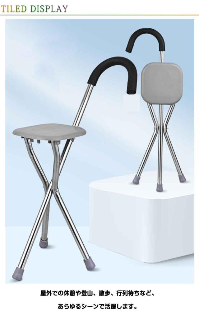携帯便利 三脚杖椅 休憩 ステンレス製 折りたたみ式 多機能 チェアー 折りたたみ式 軽量 ステッキ イス 座れる杖 椅子 杖 介護 アウトドア シニア用 高齢者 母の日 父の日 敬老の日