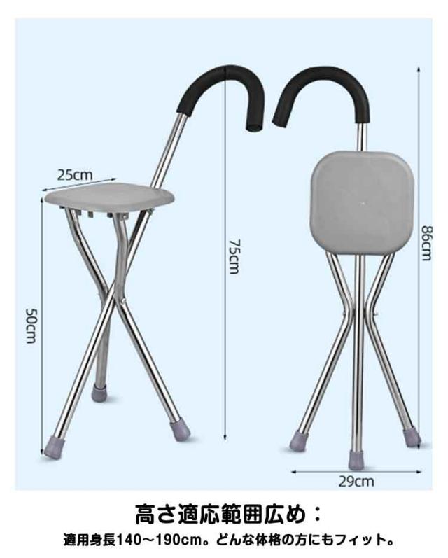 | 杖と椅子を兼ね備えたステッキチェア 厚く滑りにくい座板、折りたたみ、軽量で持ち運びに便利 三角構造の安定設計:人間工学に基づいた三脚構造で、座るときもしっかり安定。 厚みのある滑り止め座面:座面には、ひび模様の滑り止め加工付き。耐久性・耐摩耗性にも優れています。 折りたたみ式・携帯便利:使わないときは簡単に折りたたんでコンパクトに収納可能。 ステンレス製:軽量ながらも耐荷重性に優れ、変形しにくい構造で長く使えます。 滑り止めラバー脚:底部は耐摩耗ラバー仕様で、滑りにくく安定性アップ。 快適なスポンジグリップ:長時間握っても手が痛くなりにくく、汗をかいても滑らない快適設計。 高さ適応範囲広め:適用身長140〜190cm。どんな体格の方にもフィット。 屋外での休憩や登山、散歩、行列待ちなど、あらゆるシーンで活躍します。 | |