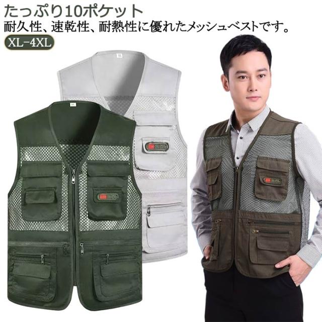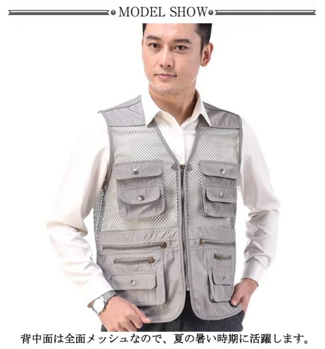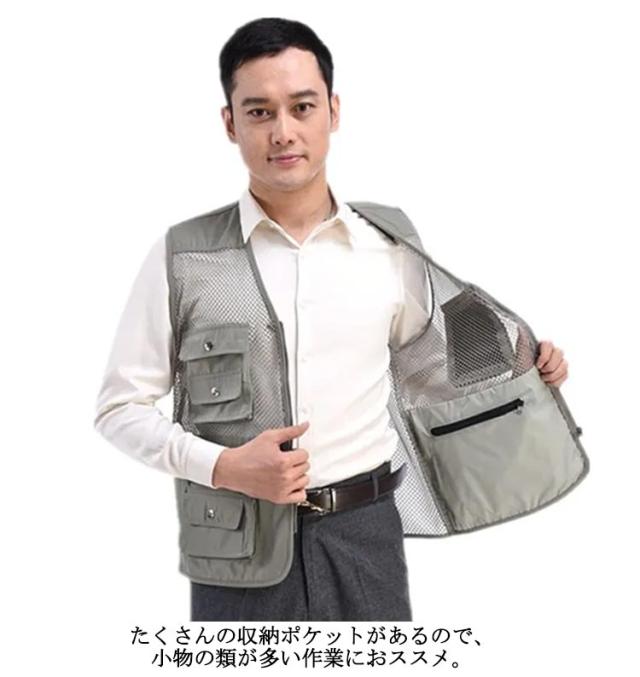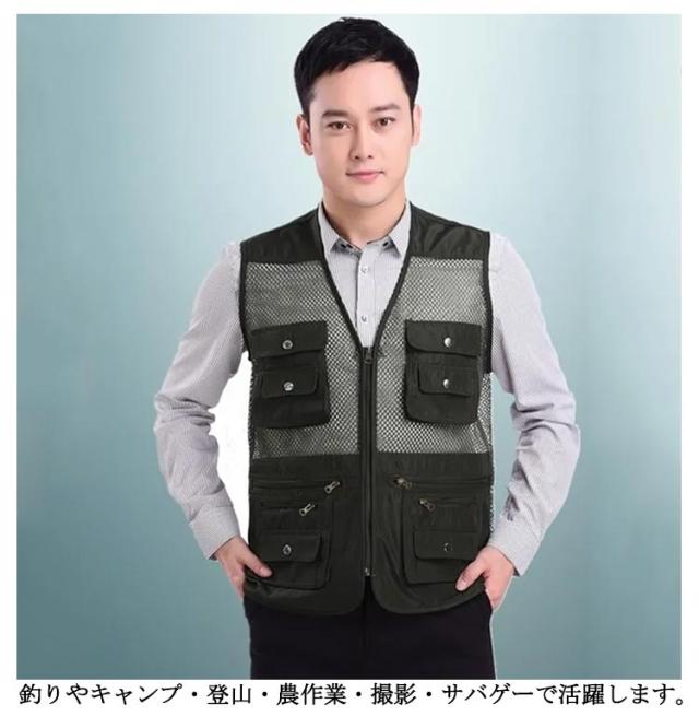 薄手 メンズ 軽量 カメラマン ノースリーブ 登山 多機能 メッシュベスト メッシュベスト アウトドア 通気性 お釣り 撮影 作業用 射撃 夏用 多ポケット 大きいサイズ カジュアル オールシーズン