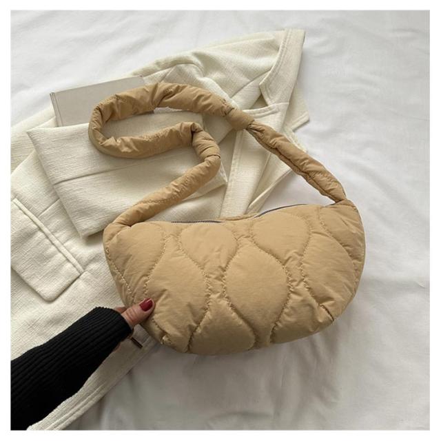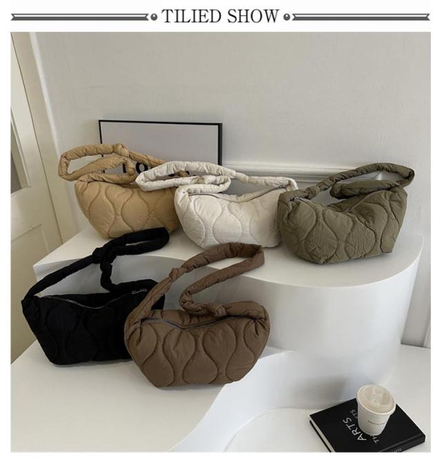 超軽量 キルティング メンズ 小さめ ユニセックス ラウンド バッグ 斜めがけ レディース ショルダーバッグ 中綿 ミニショルダーバッグ ボディバッグ ショルダーバッグ 三日月型 サコッシュ ふっくら カジュアル