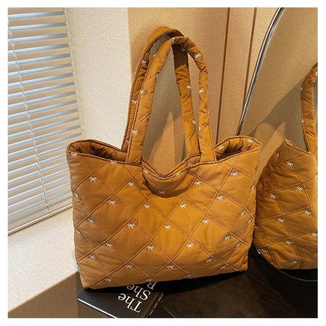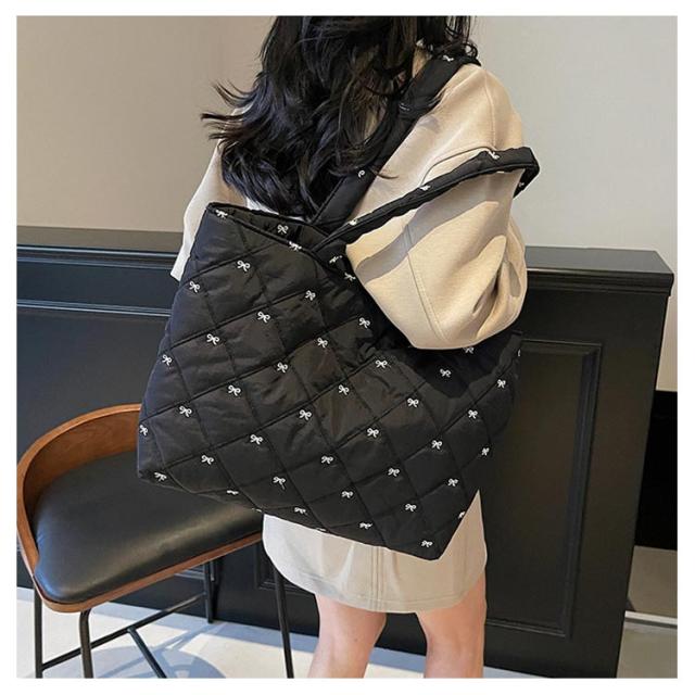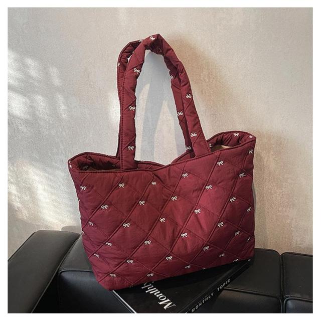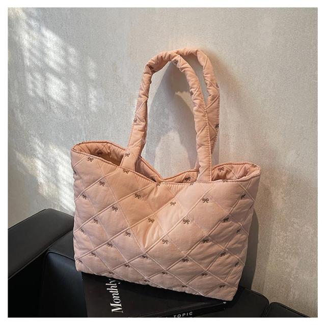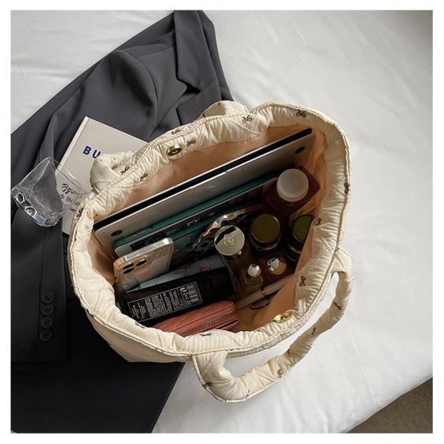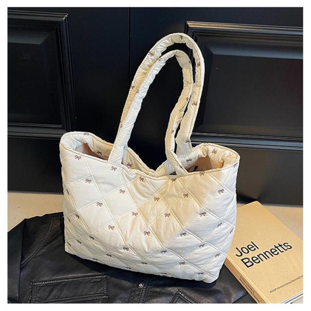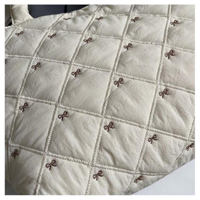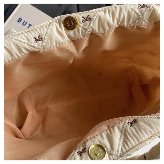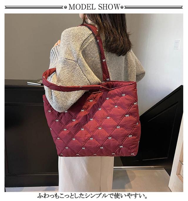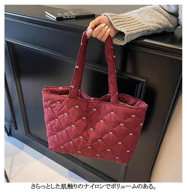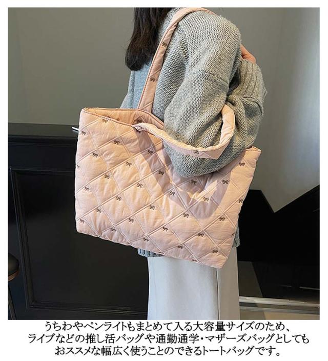 おしゃれ 入院バッグ かわいい 韓国 a4 リボン刺繍 イブル キルティング トート りぼん 刺繍 マザーズバッグ サブバッグ キルティング 大きめ バッグ 大容量 刺繍 A4サイズ対応 通勤 通学 推し活バッグ 軽量キルティングトートバッグ ナイロン キルティング バッグ