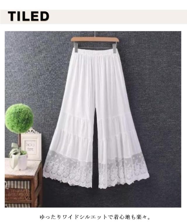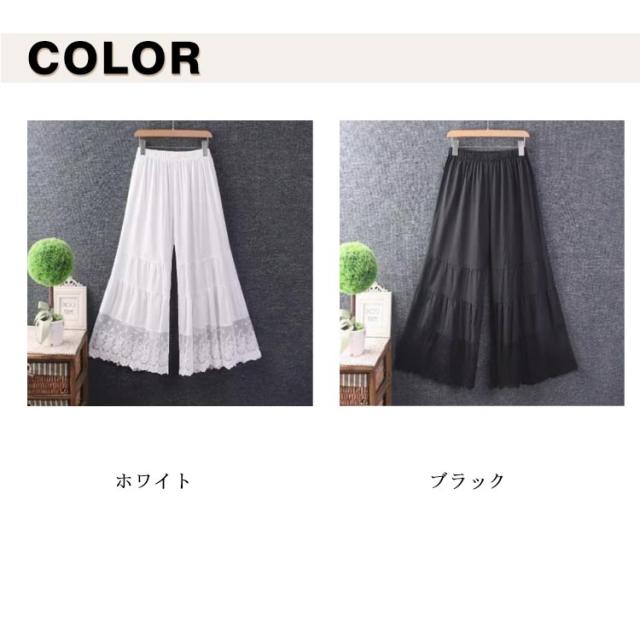 レディース 透け感 ナチュラル ロング ペチパンツ 重ね着 ペチパンツ ペチパンツ 森ガール ワイドパンツ ワンピース下 裾レース 下着 九分丈 ボトムス 春夏秋 ロングパンツ レイヤード インナー ペチコート パンツ 透け対策 インナー 送料無料