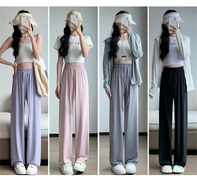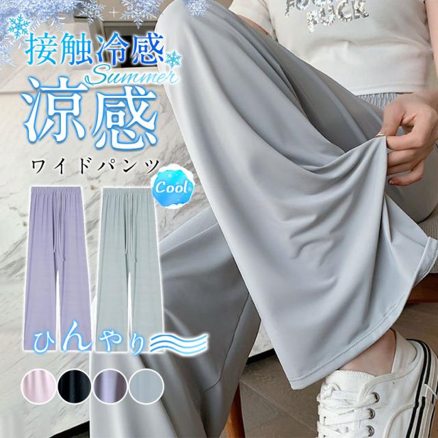 涼感ワイドパンツ レディース スウェットパンツ 接触冷感 ロング クール 涼しい 夏用 ゆったり 薄手 体型カバー ウエストゴム