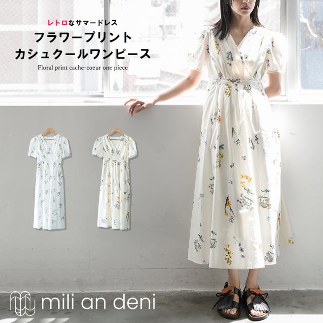春新作 花柄カシュクールワンピース レディース カットソー 半袖 無地 クルー ロング丈 レディース 春夏 ミリアンデニ メール便(郵2) o60018