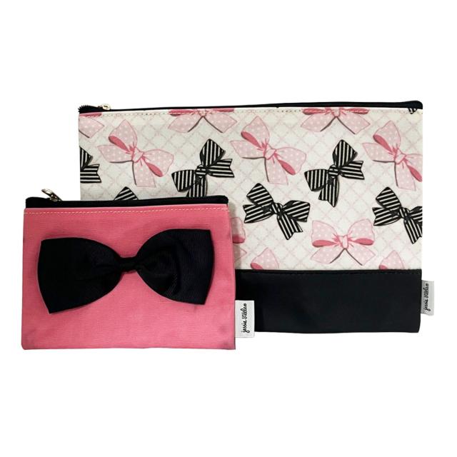 カラー(柄):Bow Peep リボン+チェック柄・ポーチ大/ピンク+ブラック・ポーチ小/ピンク×ブラック