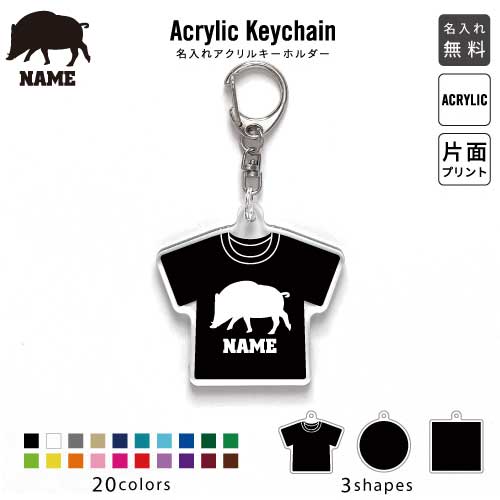 イノシシ 名入れアクリルキーホルダー アクキー アクリル 名入れ キーチェーン オリジナルキーホルダー キーリング アクセサリー 名入れアクセ 猪、亥、boar、猪突猛進 JKバッグ バッグチャーム 推し色 メンカラ