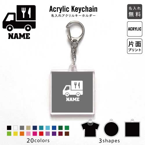 食品販売車 名入れアクリルキーホルダー アクキー アクリル 名入れ キーチェーン オリジナルキーホルダー キーリング アクセサリー 名入れアクセ キッチンカー 移動車 食品 フード JKバッグ バッグチャーム 推し色 メンカラ