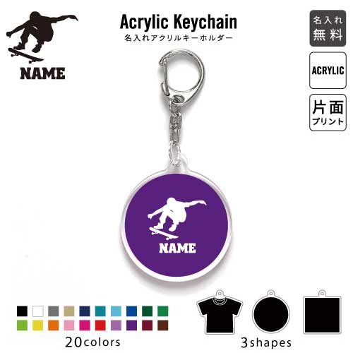 スケボー 名入れアクリルキーホルダー アクキー アクリル 名入れ キーチェーン オリジナルキーホルダー キーリング アクセサリー 名入れアクセ スケーター スケボー JKバッグ バッグチャーム 推し色 メンカラ