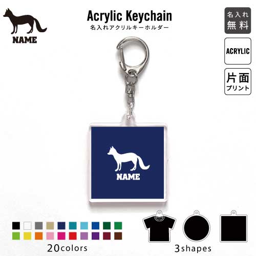 キツネ 名入れアクリルキーホルダー アクキー アクリル 名入れ キーチェーン オリジナルキーホルダー キーリング アクセサリー 名入れアクセ きつね、狐、フォックス JKバッグ バッグチャーム 推し色 メンカラ