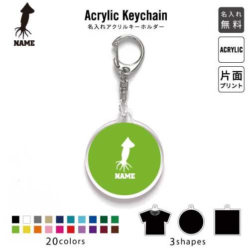 イカ 名入れアクリルキーホルダー アクキー アクリル 名入れ キーチェーン オリジナルキーホルダー キーリング アクセサリー 名入れアクセ 刺身、寿司、烏賊 JKバッグ バッグチャーム 推し色 メンカラ