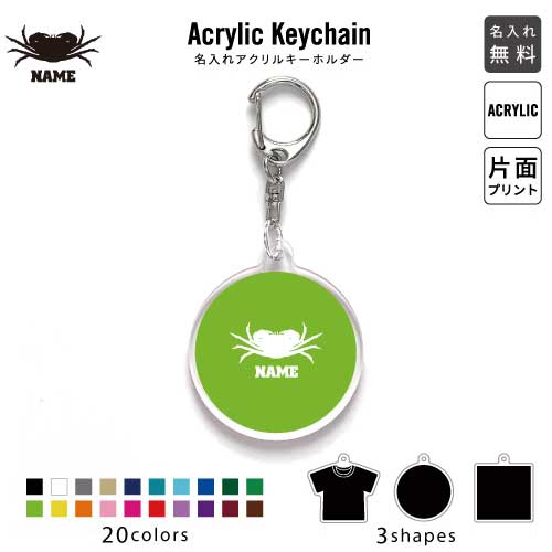 カニ 名入れアクリルキーホルダー アクキー アクリル 名入れ キーチェーン オリジナルキーホルダー キーリング アクセサリー 名入れアクセ 蟹、甲殻類、魚介、Crab JKバッグ バッグチャーム 推し色 メンカラ
